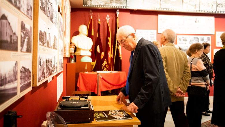 Небольшую экскурсию в зале, посвящённом истории Дмитрова в послевоенные год и быту дмитровчан в это время провёл Роман Сунгуров, заместитель генерального директора музея по научной работе. Он напомнил, что самые первые ячейки союза молодёжи III Интернационала появились в Икше и Яхроме, и что молодёжь Дмитровского уезда всегда была активной. Но вот именно комсомольская организация в Дмитрове образовалась 23 апреля 1919 года, и уже через полгода в ней было более тридцати первичных ячеек!
