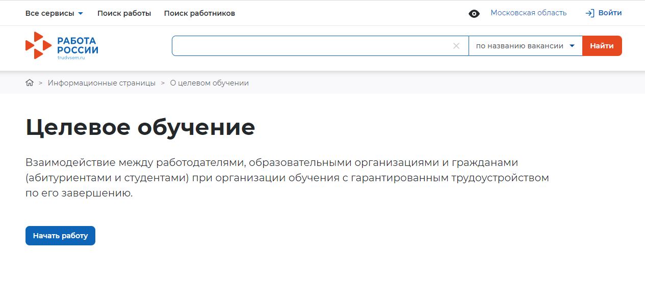 У работодателей есть о возможность регистрации на ЕЦП «Работа в России» в целях дальнейшего размещения организациями предложений о заключении договоров о целевом обучении.