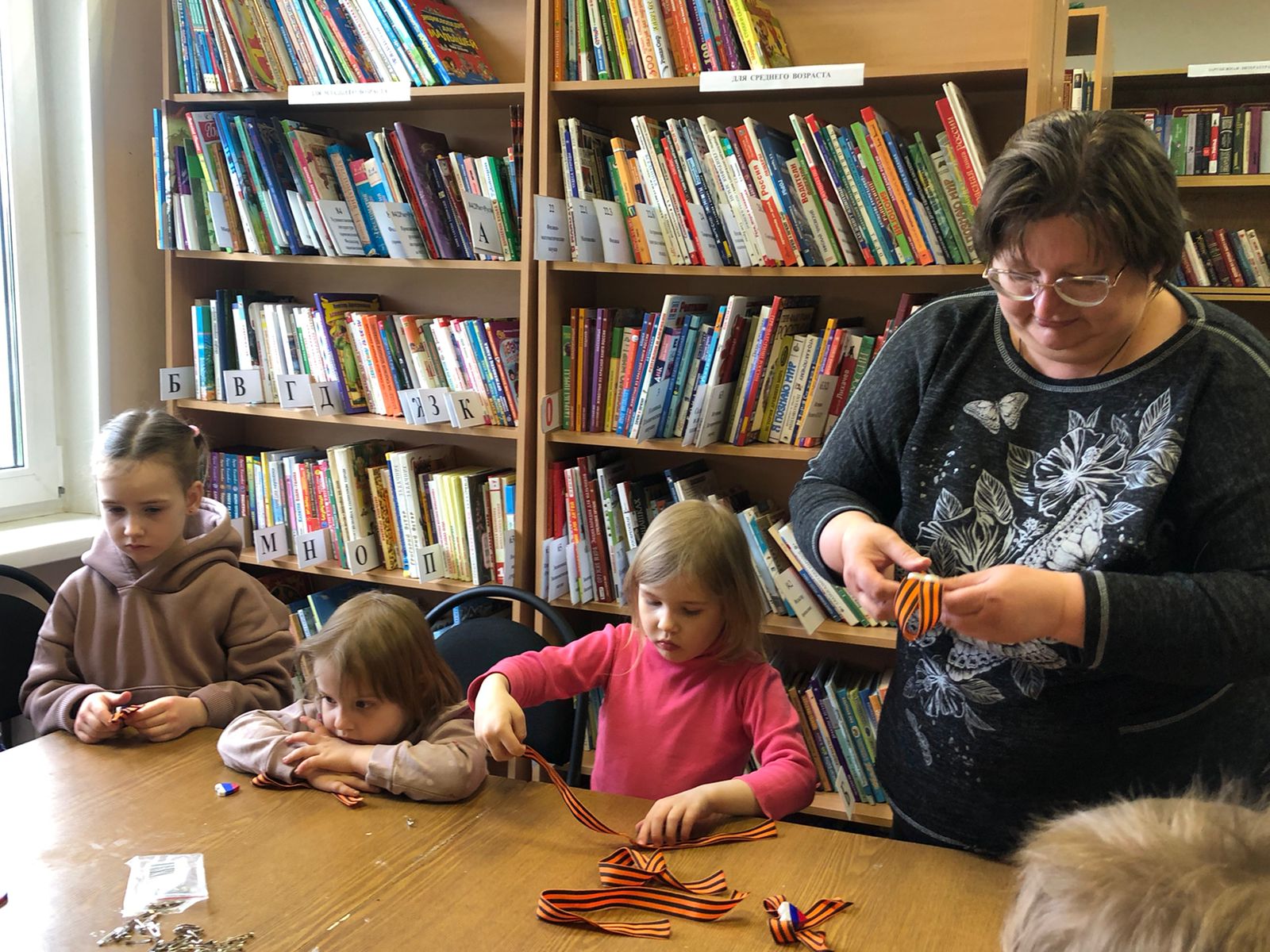 Мастер-класс «Помним, гордимся» прошел в Орешковской сельской библиотеке Рузского городского округа для воспитанников местного детского сада.