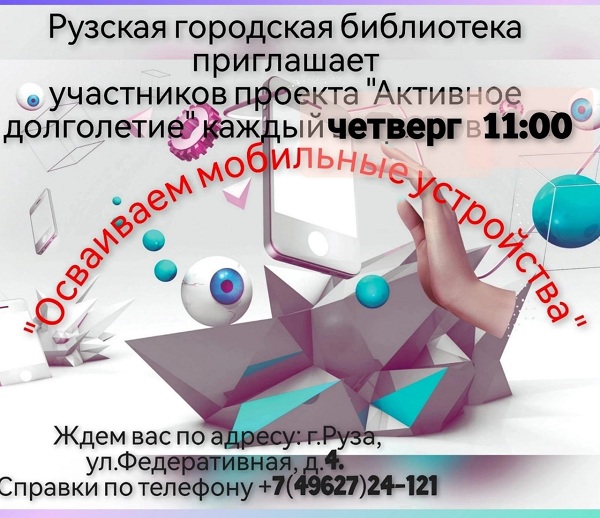 Час it-технологий «Осваиваем мобильные устройства» пройдёт 25 апреля в 11 часов в Рузской городской библиотеке для участников губернаторского проекта «Активное долголетие».