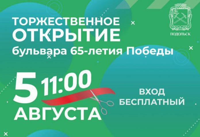 Торжественное открытие новой части бульвара 65-летия Победы состоится в Подольске 5 августа