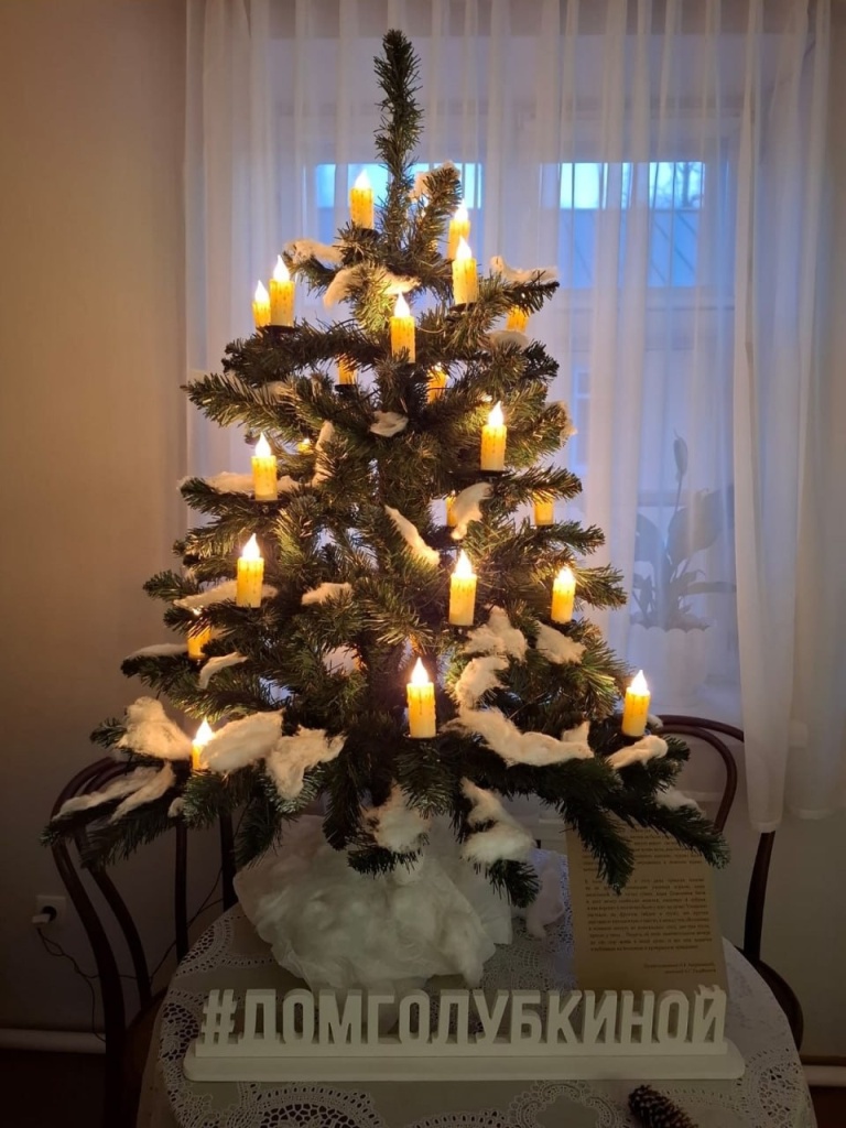 Сейчас в доме-музее Голубкиной в Зарайске также стоит ёлка без игрушек, основной наряд которой составляют свечи. Сотрудники музея с радостью приглашают посетителей сфотографироваться с этой уникальной елкой.