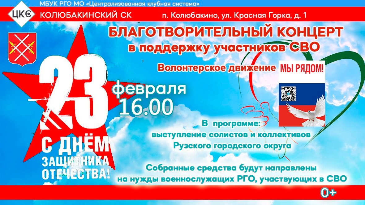 23 февраля в Колюбакинском доме культуры Рузского городского округа состоится благотворительный концерт в поддержку участников СВО.