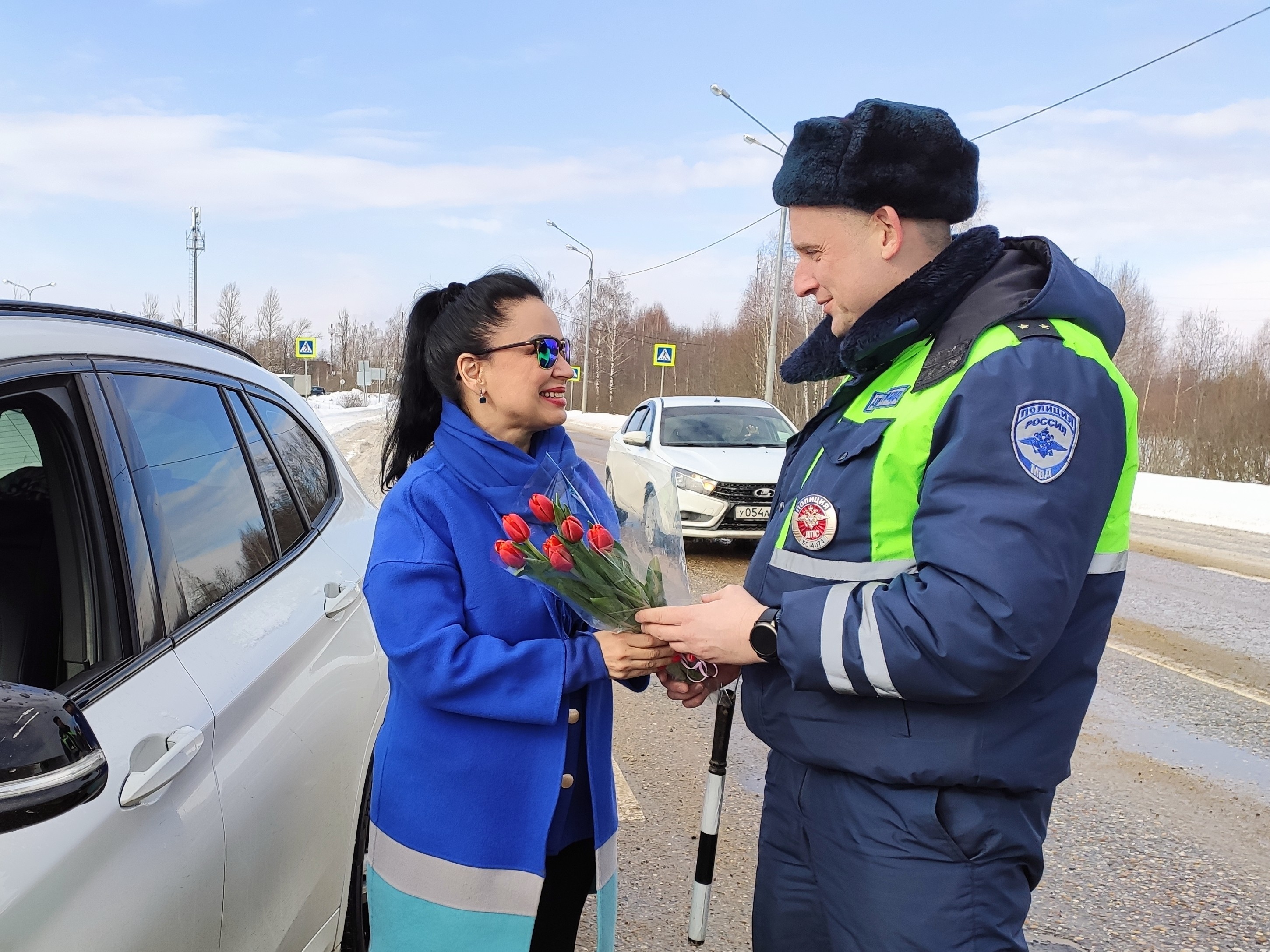 В Рузе инспекторы ДПС останавливали женщин, чтобы поздравить с праздником