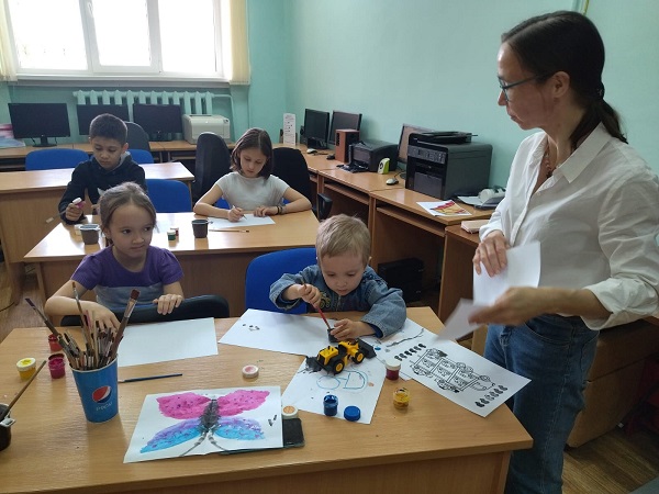 На очередном занятии в студии нетрадиционной техники рисования «Цветные ступеньки» в Рузской городской библиотеке осваивали монотипию.