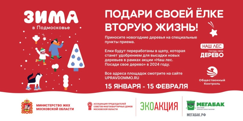 С 15 января по 15 февраля 2024 года в городском округе Воскресенск, как и во всём Подмосковье, пройдет традиционная акция «Подари своей елке вторую жизнь».