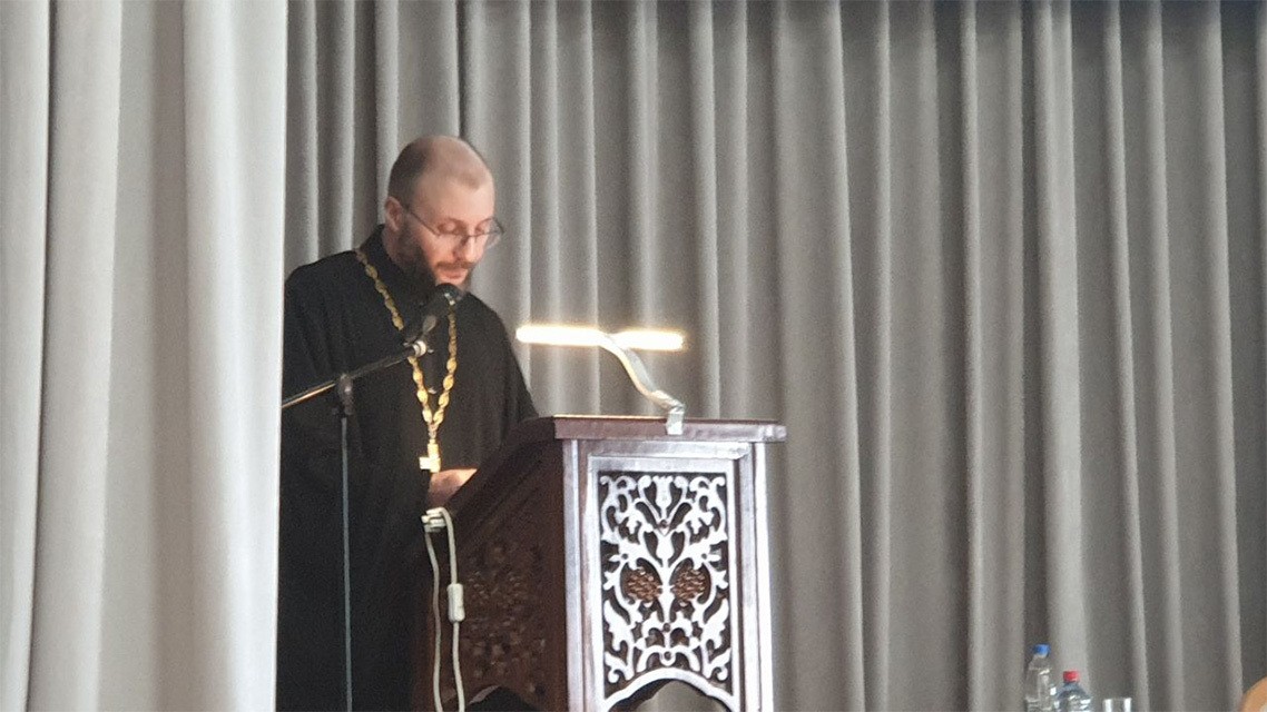 Священник Стефан Домусчи, кандидат философских наук, кандидат богословия, доцент кафедры богословия Московской духовной академии, декан миссионерского факультета Российского православного университета, представил доклад по теме «Мера, как нравственная и аскетическая категория».