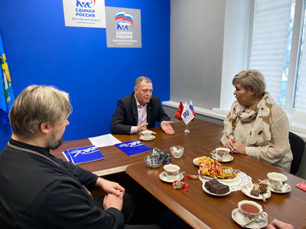 В Ленинском отделении «Единой России» партийцы и сторонники провели встречу с благочинным церквей Видновского округа Дмитрием Березиным.