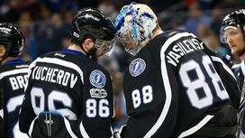 Российский голкипер "молний" Василевский отразил 28 броской из 31 по своим воротам. Кучеров дважды ассистировал партнерам, а третий наш легионер "Тампы" Михаил Сергачев забил гол.