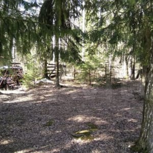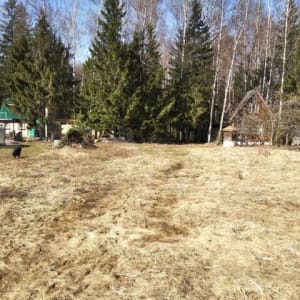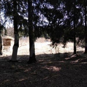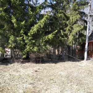 Двe сотки в крупных деревьях (видно на фото). Южная светлая сторона.